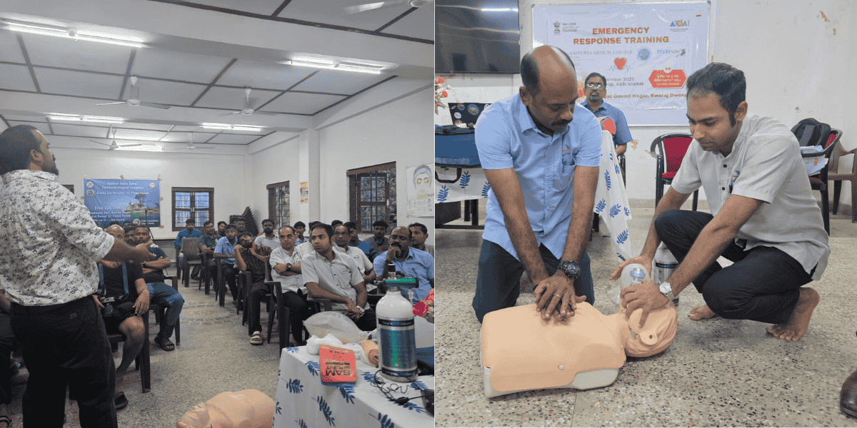 India Tourism, Sri Vijayapuram, Ministry of Tourism, Government of India, in collaboration with the Adventure Tour Operators Association of India (ATOAI), successfully organised a comprehensive Emergency Response Training Programme at the Panchayat Hall in Govind Nagar, Swaraj Dweep. The initiative was designed to enhance the safety preparedness of frontline tourism personnel who play a crucial role in ensuring the well-being of visitors in this high-activity island destination.