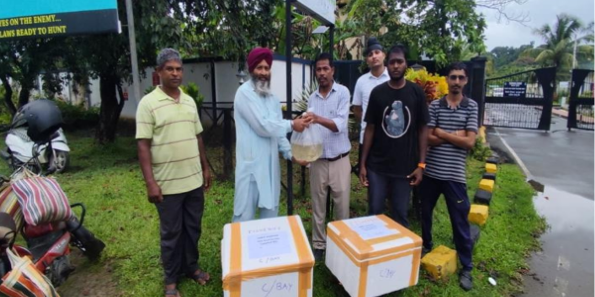 According to details shared, the Fisheries Department has produced seeds of Indian Major Carps at its Nayagaon facility and carried out the large-scale stocking of fingerlings and fry in multiple locations. A total of 1,250 fingerling-sized fish seeds were airlifted using helicopter services and released into the Amrit Sarovar ponds of Nicobar District. Similarly, 900 fry-sized fish seeds were stocked in the Amrit Sarovar ponds of South Andaman District. This logistical step was crucial in overcoming geographical barriers that often limit the distribution of live fish seeds to far-flung islands within the archipelago.