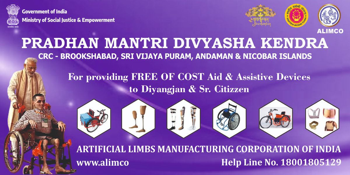 The Pradhan Mantri Divyasha Kendra at CRC Brookshabad has been designated as the nodal facility for processing applications and distributing assistive devices in the islands. The initiative aims to support persons with disabilities and senior citizens by improving mobility, accessibility and quality of life through appropriate aids.