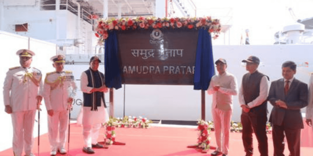Defence Minister Rajnath Singh on Monday commissioned Indian Coast Guard Ship (ICGS) Samudra Pratap, the first of two Pollution Control Vessels, marking a significant milestone in India’s maritime and environmental protection capabilities.