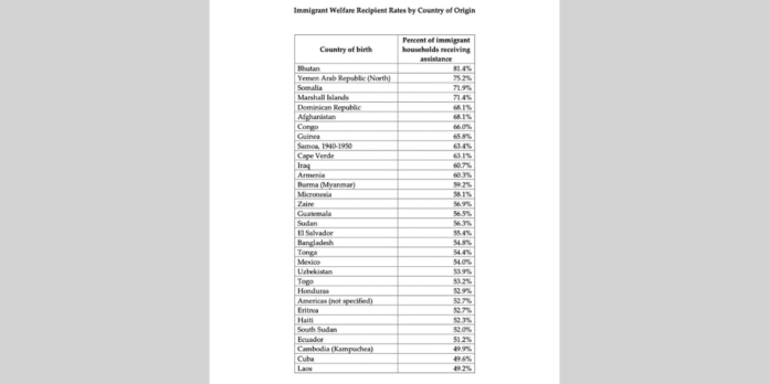 Bhutan ranks highest, with 81.4 per cent of immigrant households reportedly receiving welfare benefits. Yemen (North) follows at 75.2 per cent, while Somalia and the Marshall Islands record rates of 71.9 per cent and 71.4 per cent, respectively. Several other nations show similarly high levels of participation in public assistance programmes.