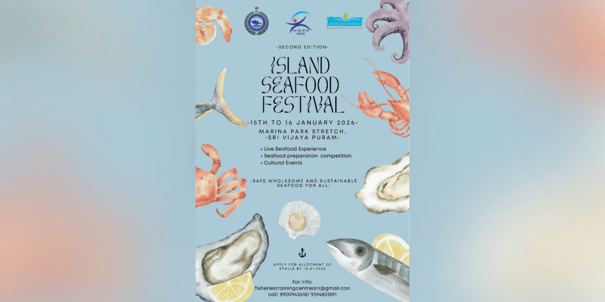 The Department of Fisheries, in collaboration with the Information, Publicity and Tourism (IP&T) Department of the Andaman and Nicobar Administration, will organise the Island Seafood Festival – 2026 on January 15 and 16 at the Marina Park stretch road in Sri Vijaya Puram. The event is being held with financial assistance from the National Fisheries Development Board (NFDB), Hyderabad, and will place special emphasis on Tuna Cluster Development in the Andaman and Nicobar Islands.