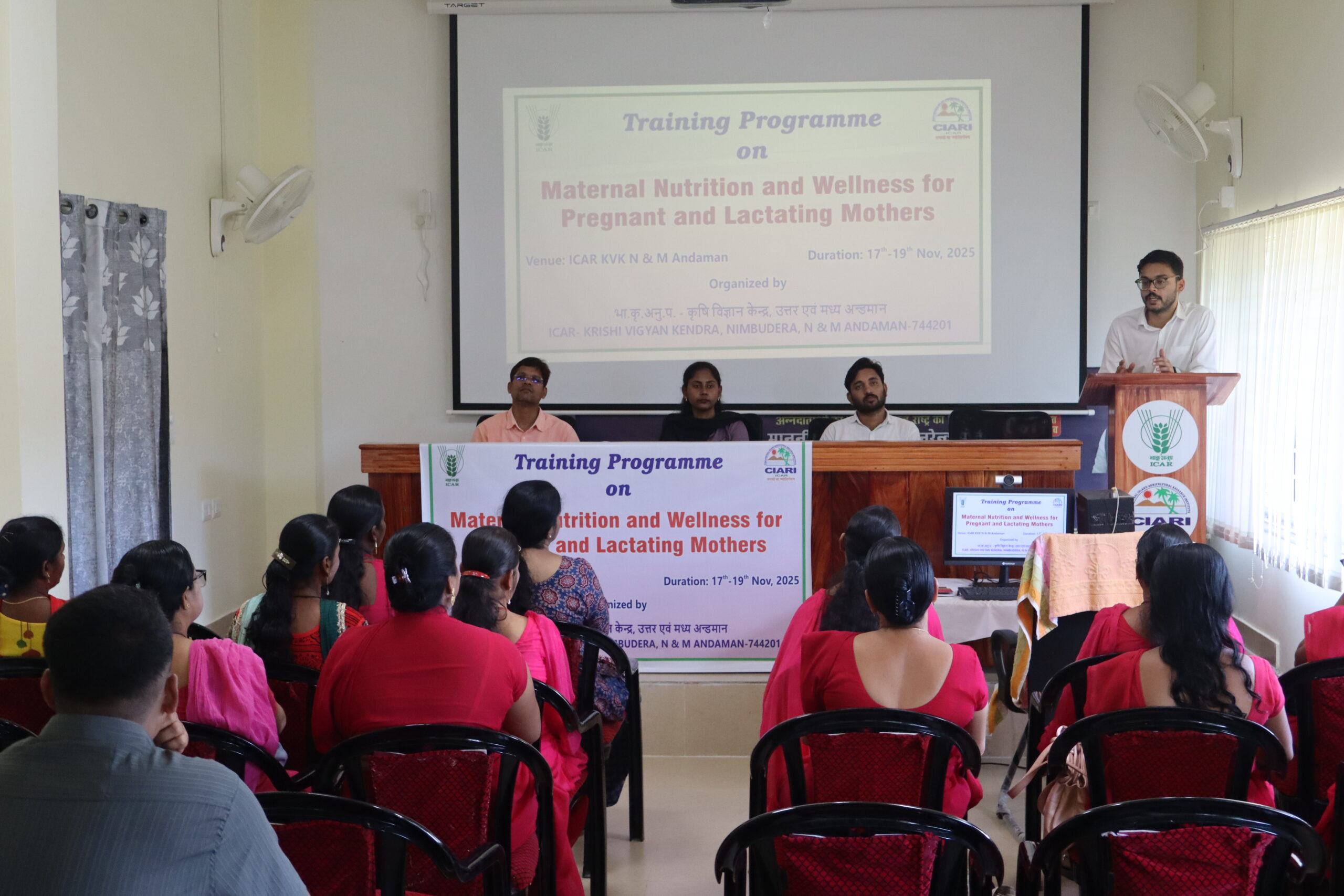 ICAR-KVK North and Middle Andaman conducted a three-day training programme on “Maternal Nutrition and Wellness for Pregnant and Lactating Mothers” from November 17 to 19, 2025, aiming to build capacity among extension functionaries and Anganwadi Workers of Basantipur Gram Panchayat. The initiative focused on strengthening frontline nutrition awareness and improving maternal health outcomes in rural and tribal communities.