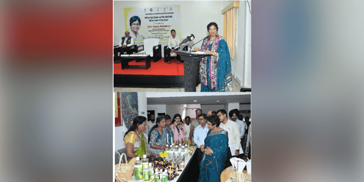 As part of the official programme, the NCW Chairperson later attended an interactive session organized by the Department of Industries, along with MSME, DFO, Coir Board, and allied departments such as Social Welfare and Rural Development. The event brought together women associated with various government-supported initiatives, including PMEGP, PMFME, Dulari, and PMMY, in addition to entrepreneurs linked with ANE-Sagarika.