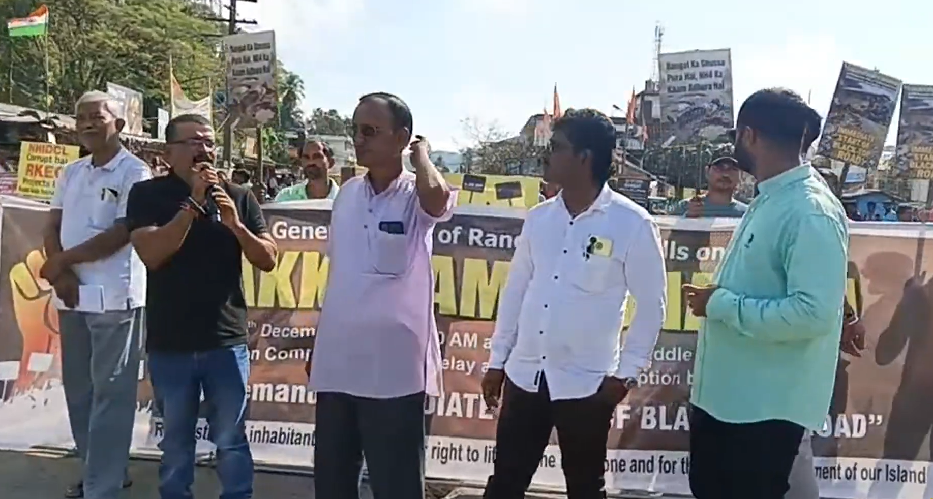 A massive chakka jam by residents and local organisations in Rangat brought vehicular movement to a halt on Monday as frustrations over the poor condition of NH-4 spilled onto the streets. The protest, which began at 7 a.m., continued late into the night, with demonstrators demanding immediate road construction and proper black-topping along the North and Middle Andaman stretch.
