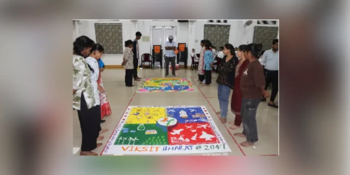 In parallel, a Rangoli Competition based on the theme “Viksit Bharat @2047” was organised, where participants created designs aligned with the vision of a developed India. The activity drew active involvement, with students using visual art to interpret national aspirations and cultural identity.