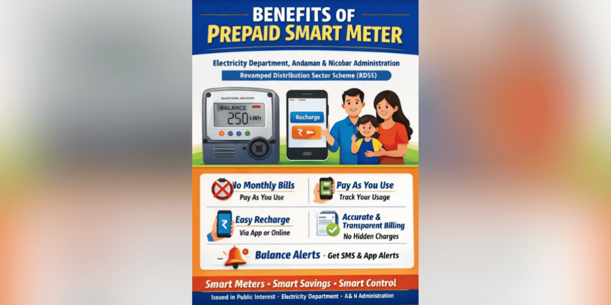 The Electricity Department of the Andaman and Nicobar Administration will roll out a series of public awareness camps on prepaid smart meters across Sri Vijaya Puram and surrounding areas as part of ‘Smart Meter Pakhwada’ from February 19 to 23. The initiative is being conducted under the Revamped Distribution Sector Scheme with the objective of familiarising consumers with the functioning, benefits and usage of smart metering technology.