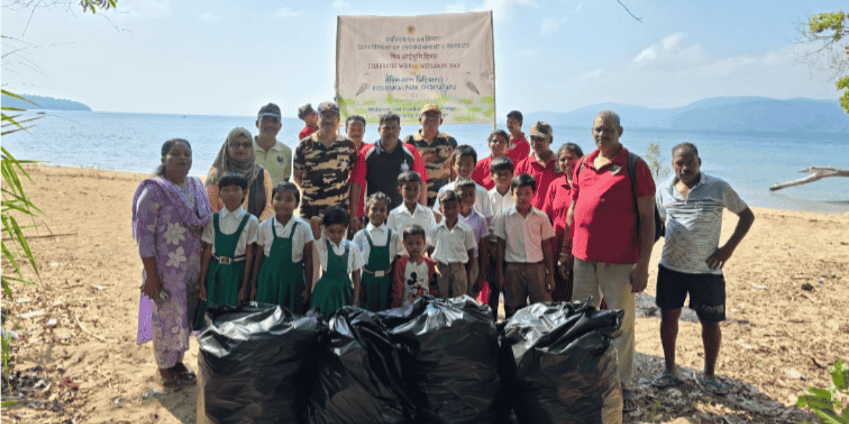 As part of the observance, a beach cleaning drive was conducted with the participation of students from Primary School, Chidiyatapu, along with their teachers and staff of the Biological Park. The activity was designed to promote cleanliness, raise awareness about coastal wetland protection, and instil a sense of environmental responsibility among young learners. Students actively took part in removing waste from the shoreline, reinforcing the message of sustainable interaction with natural ecosystems.